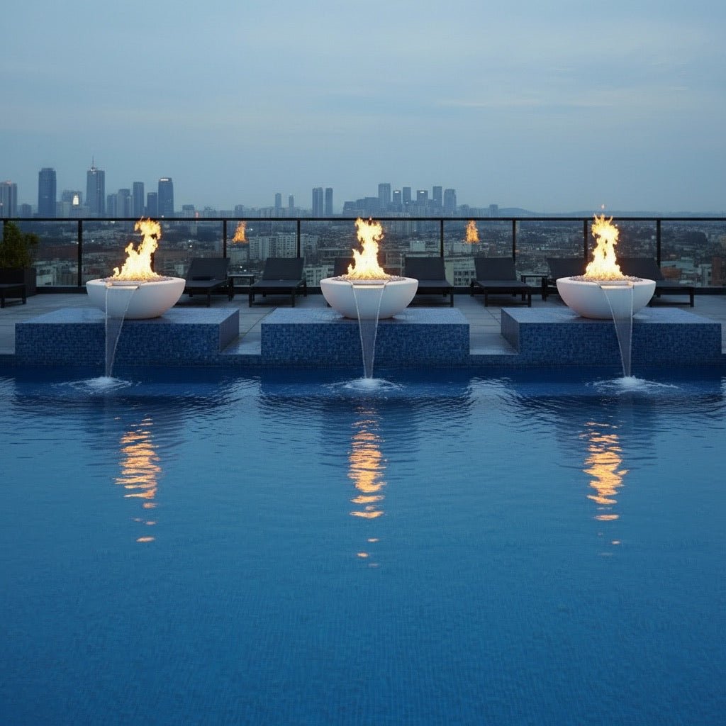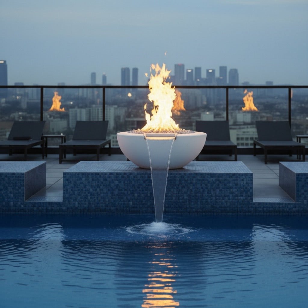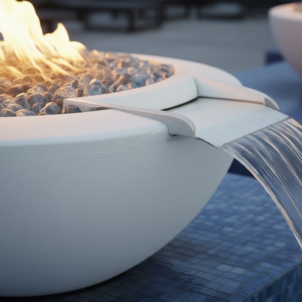 The Legacy Round Fire Water Bowl features smooth, continuous curvature with integrated fire and water expression in a sculptural outdoor form. Its open round bowl profile provides broad flame visibility and a refined silhouette suited for patios, courtyards, pool decks, and landscape compositions. Constructed from durable GFRC, it delivers the look and feel of solid concrete with reduced weight for long-term outdoor performance.