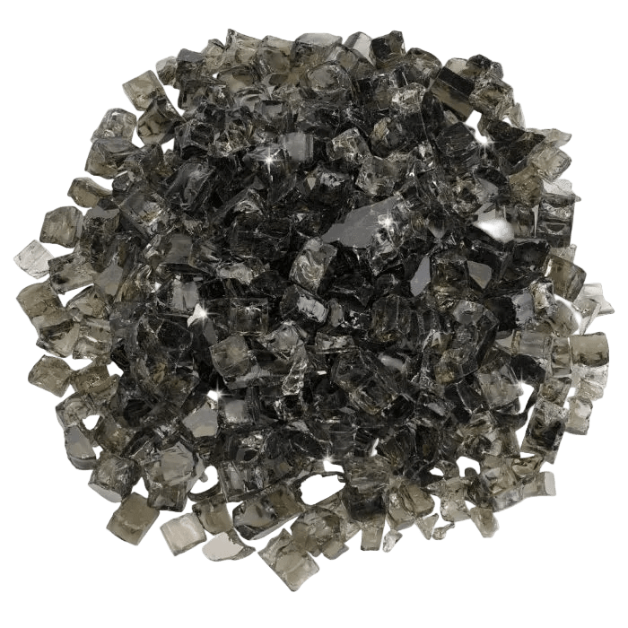 Used in fire pits, fireplaces, and decorative installations, fire glass creates a bright reflective flame effect while also concealing the burner components below. Each piece includes a reflective surface that enhances both flame movement and light.