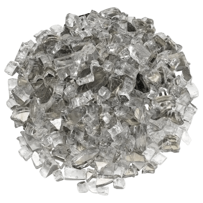 Used in fire pits, fireplaces, and decorative installations, fire glass creates a bright reflective flame effect while also concealing the burner components below. Each piece includes a reflective surface that enhances both flame movement and light.