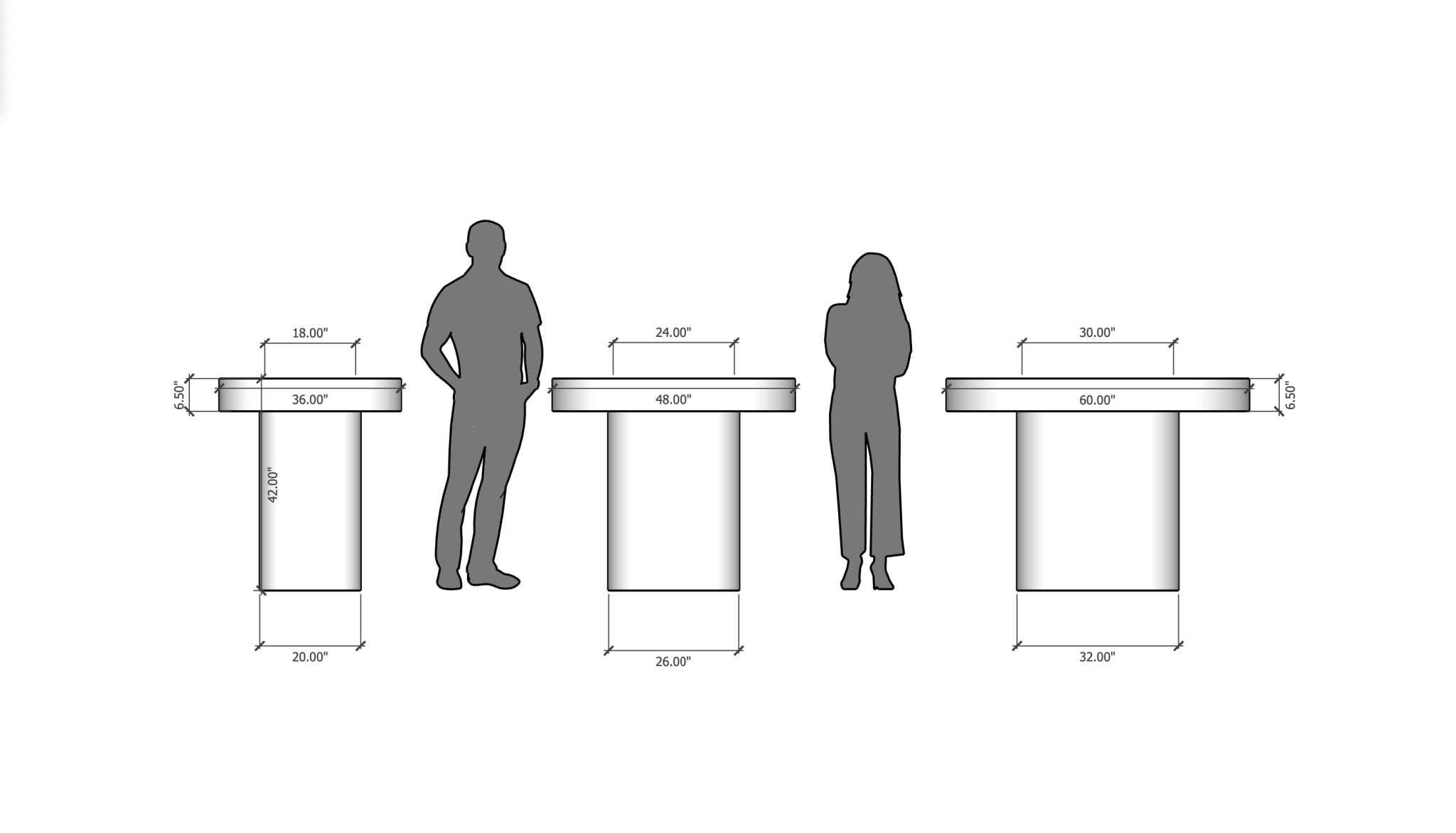 • 36" D x 42" H – 90,000 BTU, 18" D opening, 20" D base, 3.25" and 6.5" Tabletop Edges
