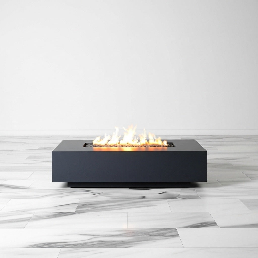 The Lineo Rise Fire Pit Table has a recessed base and is a sleek and versatile fire feature with an added toekick. Built from marine-grade aluminum alloy for exceptional durability. Designed for indoor and outdoor use, it delivers high-performance heat output, creating the perfect ambiance for any space.