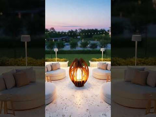 The Ovolis Fire Sculpture is an elegant expression of fluid geometry and flame, defined by a sculpted oval form that rises and opens to reveal fire at its core. Organic yet architectural, it functions as a refined outdoor sculpture that brings movement, light, and quiet drama to its surroundings.