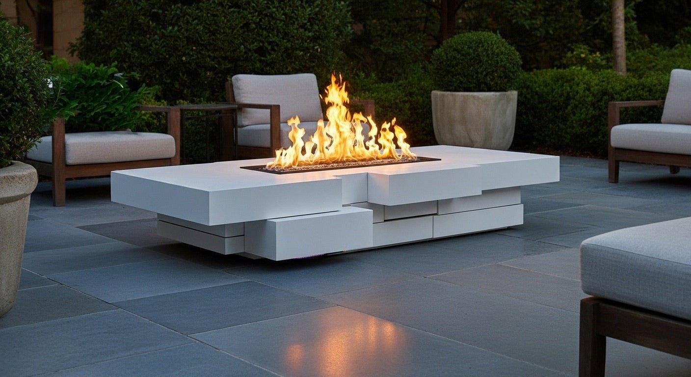 With its layered precision and industrial sophistication, the Block Stack Fire Pit Table redefines outdoor luxury, bringing warmth and contemporary artistry to high-end patios, hospitality spaces, and modern estates. Contact us to customize yours today.