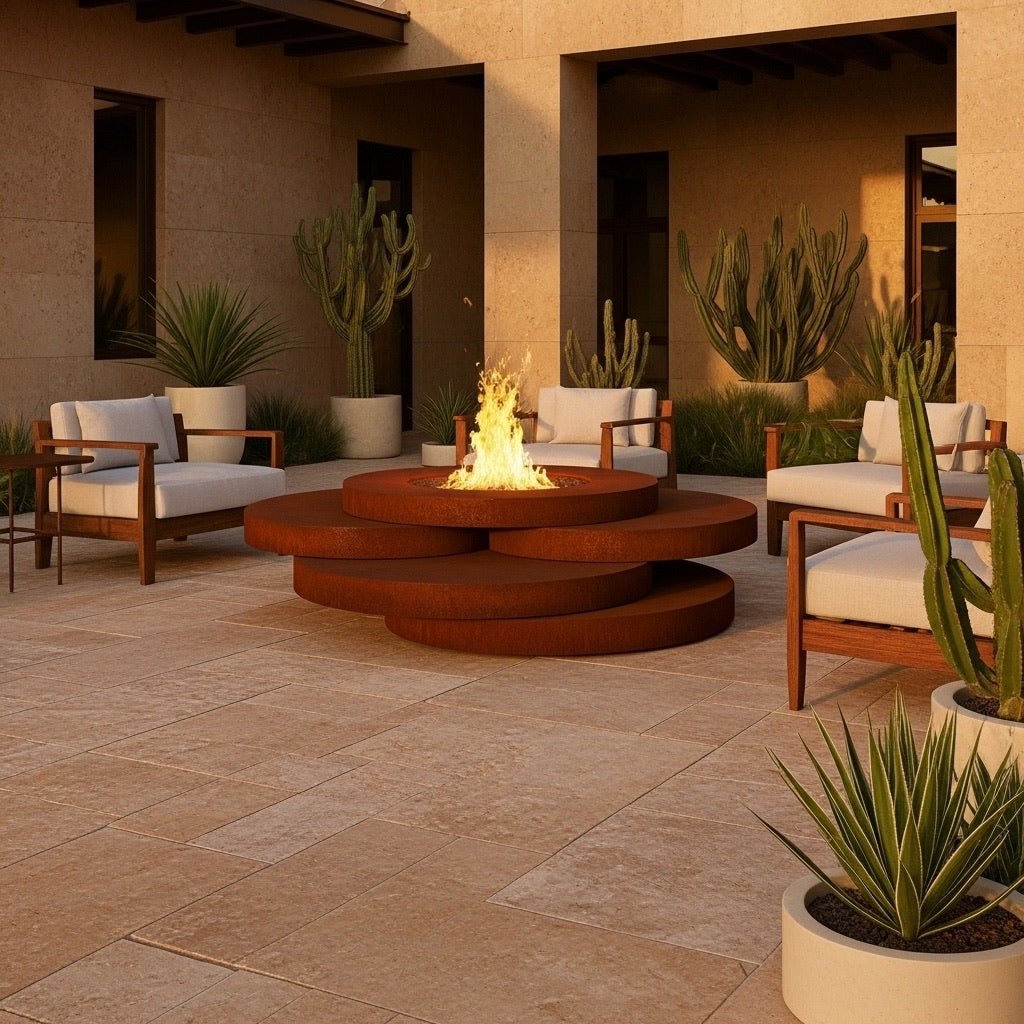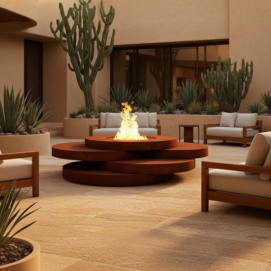 The Dunes Fire PitĀ Table is a stunning statement piece, blending organic inspiration with modern geometry. Its layered, circular design mimics the soft, flowing contours of desert dunes, creating a sense of movement and depth. Crafted for both luxury residential and high-end commercial spaces, this fire table offers a perfect balance of form, function, and durability.