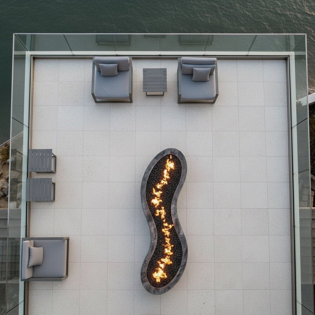 The Flows Fire Pit Table embodies the fluid movement of lava flows and winding rivers, bringing a sculptural, organic element to outdoor spaces. Designed with soft, curving lines and a low-profile form, this fire pit table integrates seamlessly with modern patios, poolside lounges, and luxury outdoor settings. Crafted from premium marine-grade aluminum, it offers both durability and aesthetic refinement.