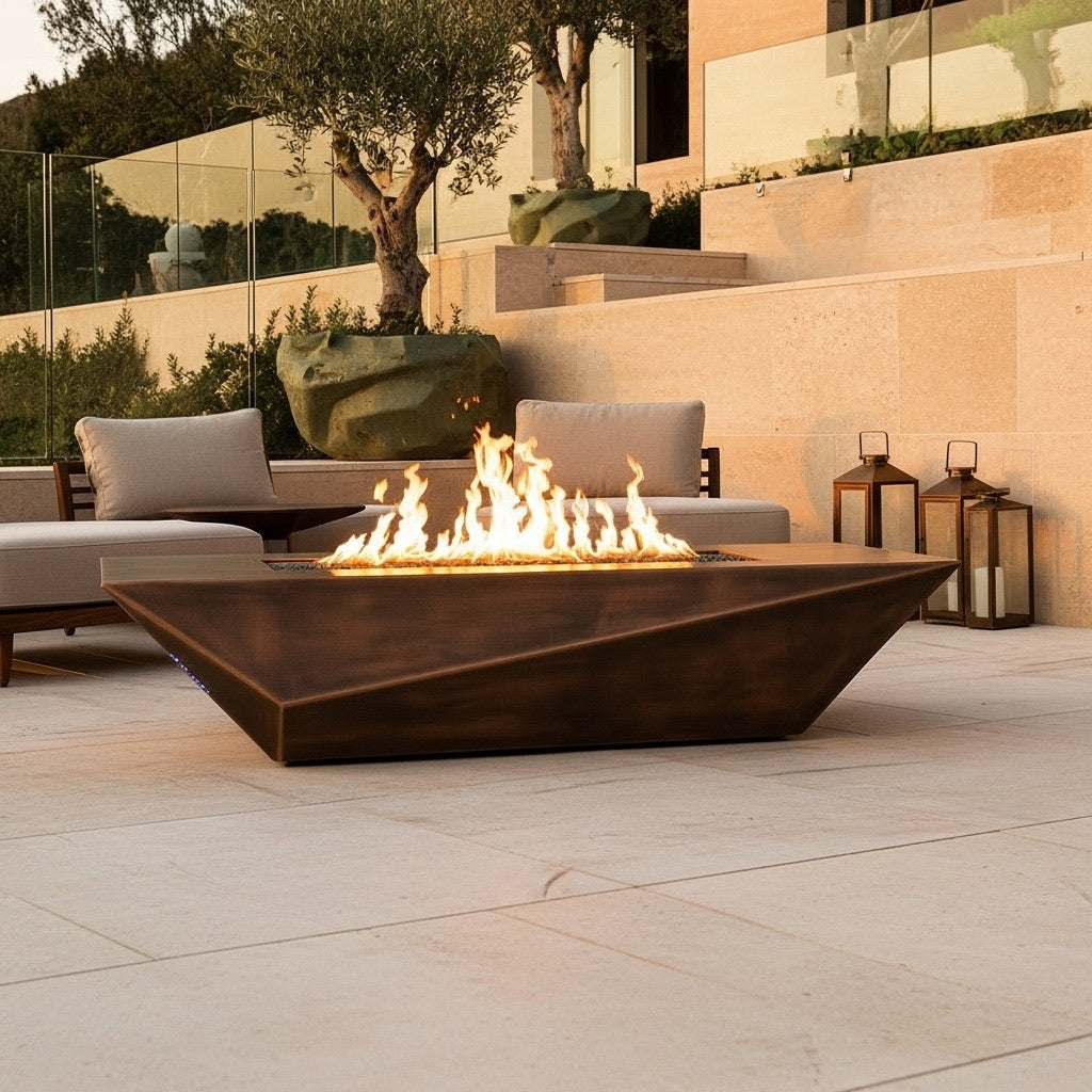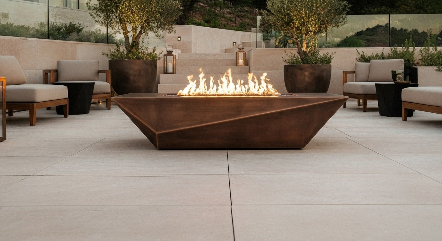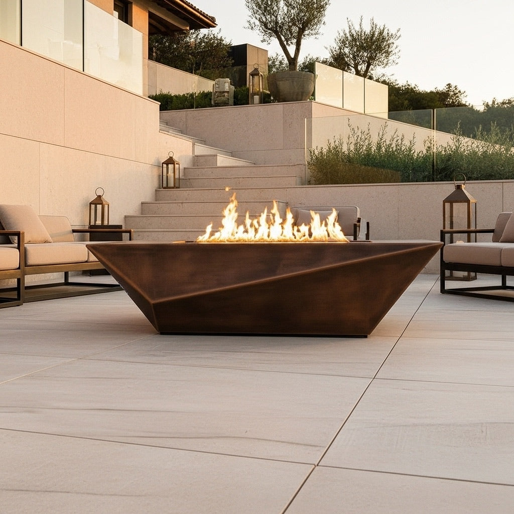 The GeoSlide Fire Pit Table is perfectly proportioned for modern outdoor environments—designed to flow, built to last. Contact us to customize yours.