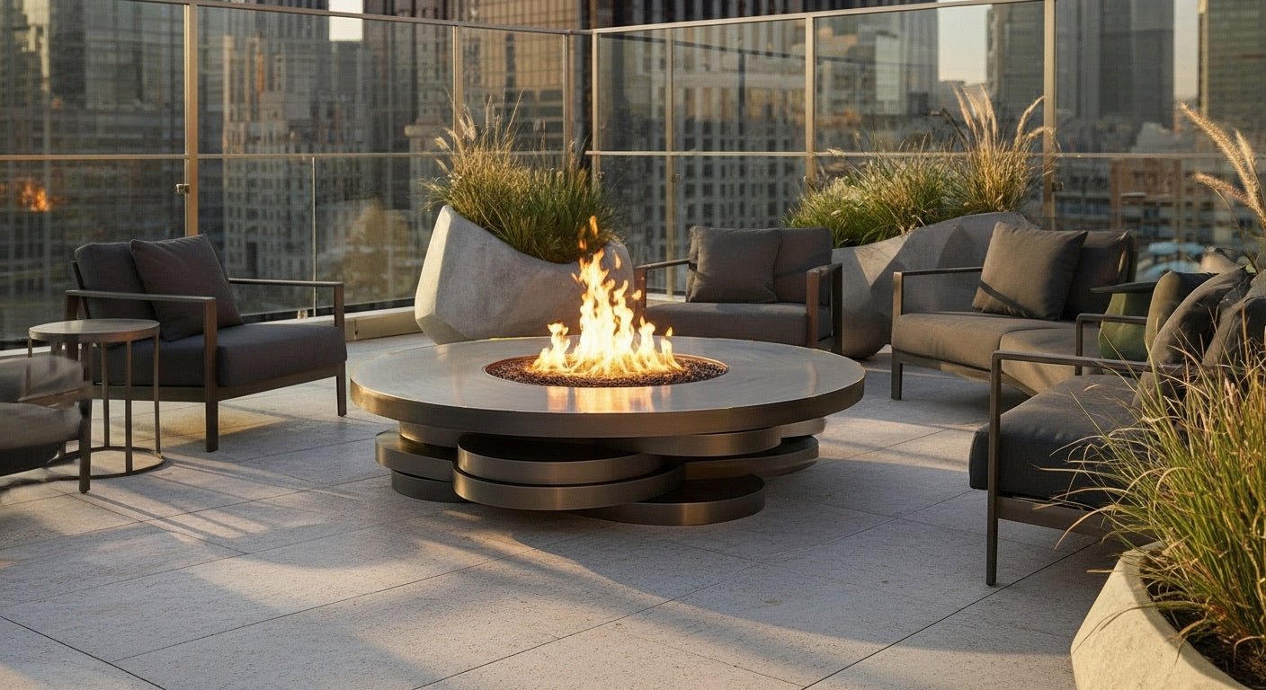 The Orbital Fire Table is a bold, contemporary fire feature inspired by the elegance of planetary motion and layered celestial rings. Its multi-tiered circular design creates a striking, floating effect, adding a sense of movement and depth to any outdoor space. Crafted with premium powder-coated aluminum, this fire table is both a sculptural statement and a high-performance heating solution for luxury landscapes.