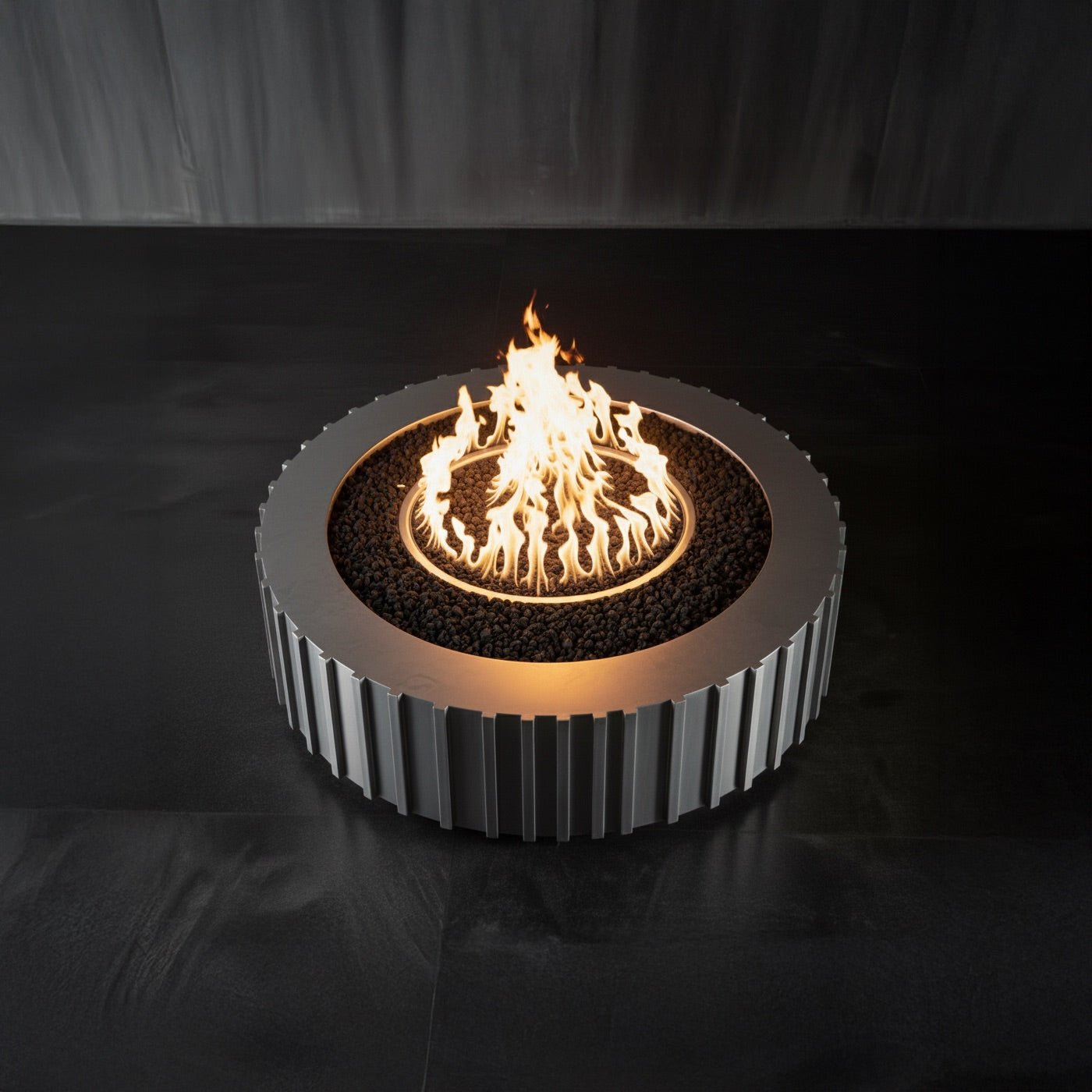 The Spline Round Fire Table is a sculptural outdoor fire feature that merges engineered precision with modern architectural rhythm. Defined by its vertically ribbed cylindrical form, the design draws inspiration from machined splines and contemporary column structures, creating a piece that feels both technical and refined. The continuous fluting introduces shadow, depth, and texture, allowing firelight to play across the surface and emphasize the table’s sculptural quality from every angle.