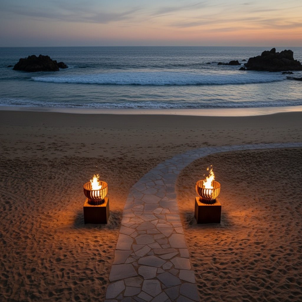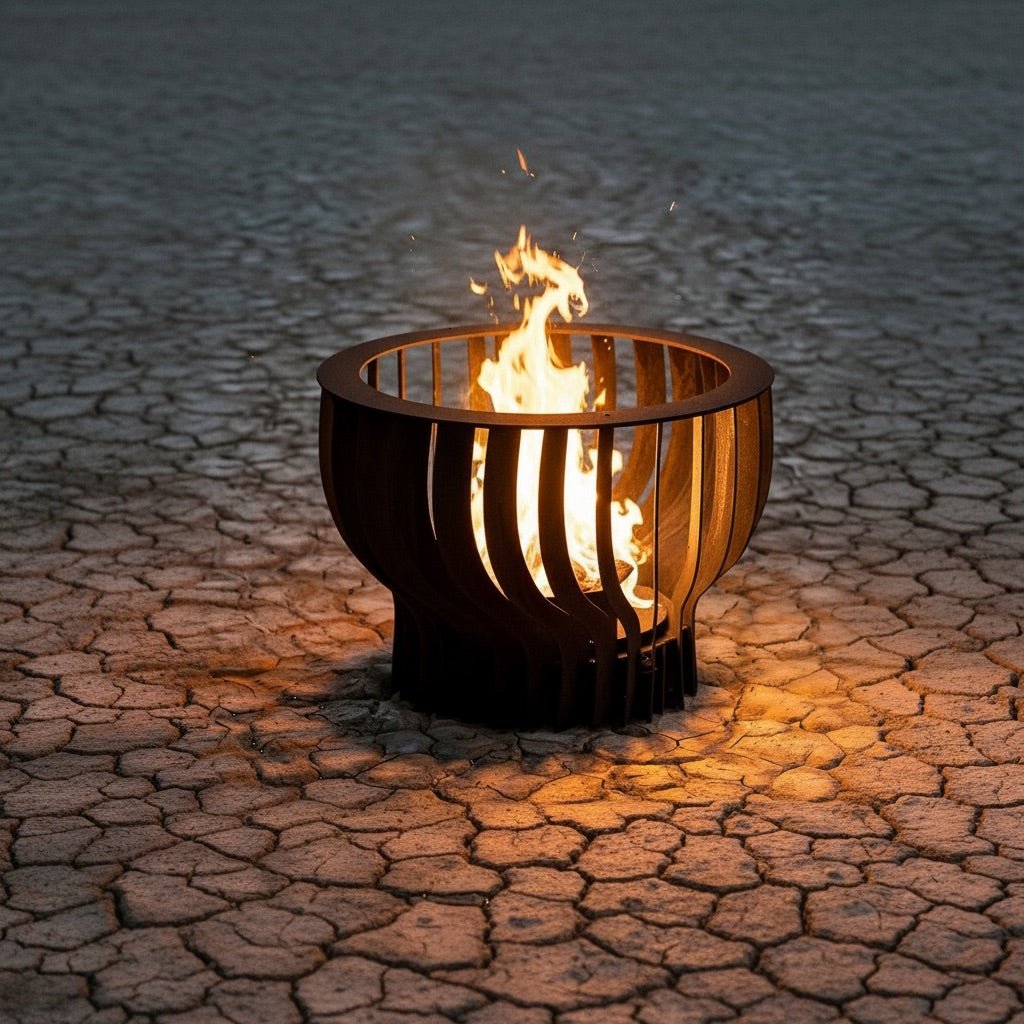 The Neutron Fire Pit features a dynamic swirling form inspired by the motion and energy of a neutron, creating a captivating flame presentation that draws the eye from every angle. Its layered curves and open structure allow the fire to move with depth and dimension, adding an elegant presence to any outdoor environment. The design can be crafted in Corten, powder coated aluminum, powder coated steel, or specialty patina finishes that replicate real metal character in a wide range of textured or metallic color options.