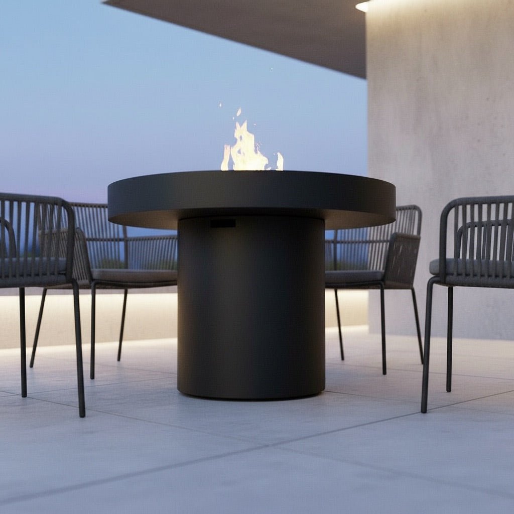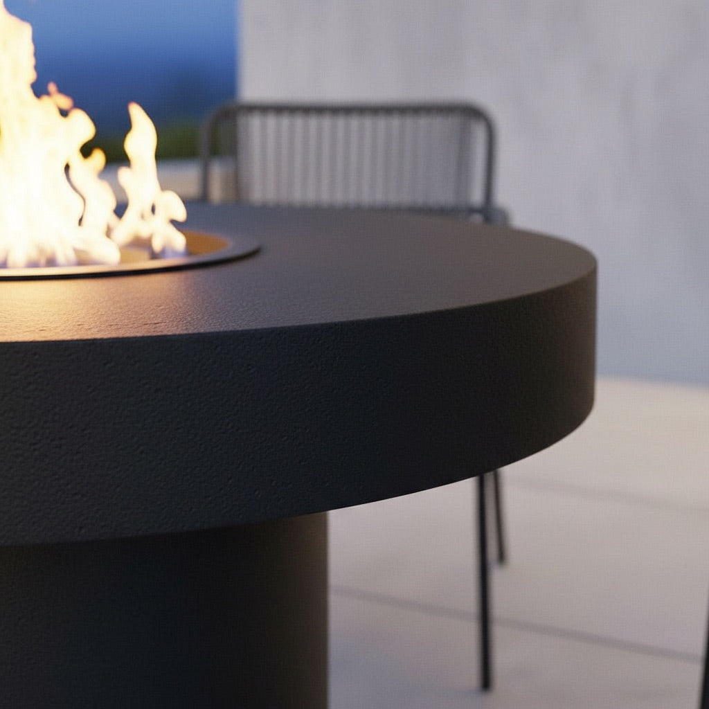 The Circa Bold Fire Pit Dining Table is defined by its circular geometry, elevated dining height, and substantial tabletop that creates a confident architectural presence. Its bold proportions and clean lines make it a natural centerpiece for residential patios, hospitality dining spaces, and commercial environments designed for gathering and shared experience.
