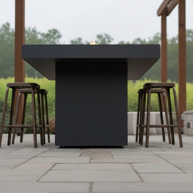 The Lineo Bold Fire Pit Bar Table is defined by its elongated linear geometry, substantial tabletop, and elevated bar height, creating a bold architectural presence for social and entertaining environments. Its clean proportions and strong horizontal lines make it a striking centerpiece for residential patios, hospitality venues, and commercial gathering spaces.