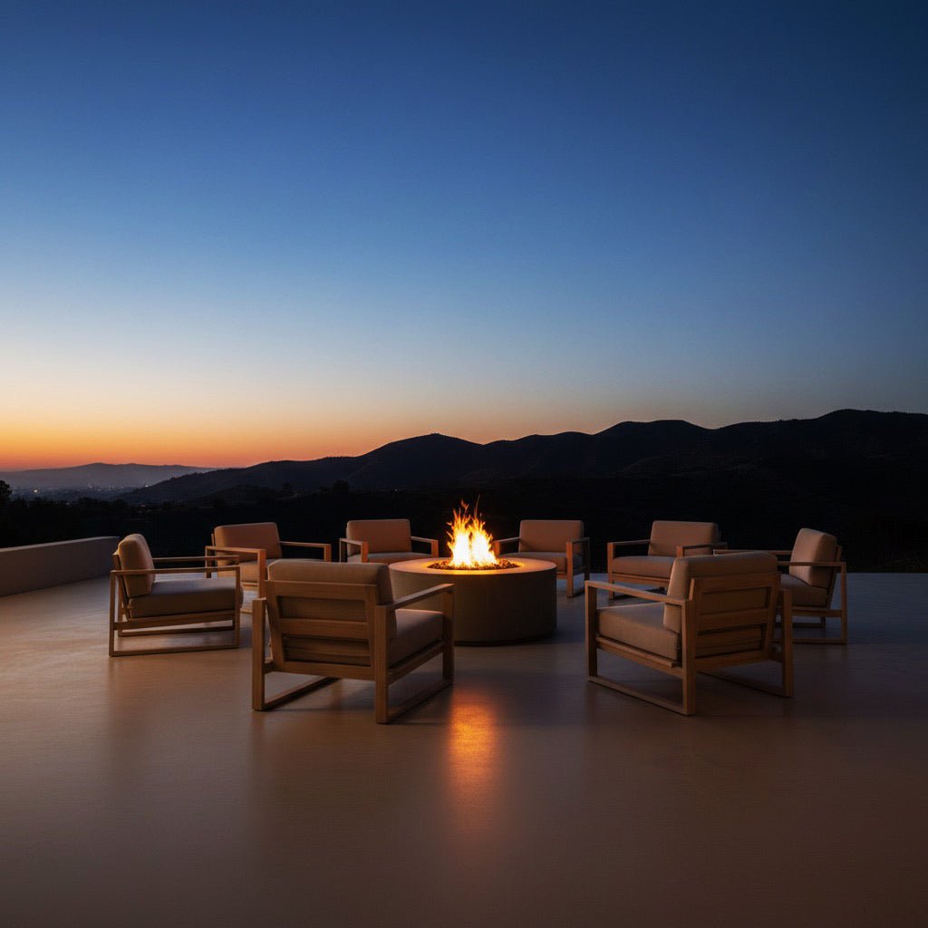 The Manhattan Cylinder Round Fire Table combines modern elegance with functionality, offering a striking centerpiece for any outdoor space. With its broad lip to hold beverages and a variety of finishes available, this fire table seamlessly complements any outdoor design. Crafted from durable glass-fiber reinforced concrete (GFRC) and featuring a stainless steel burner, it ensures long-lasting performance. Finished in Rain Cloud Natural Concrete with large tumbled lava rock, it creates a natural and inviting ambiance for gatherings.